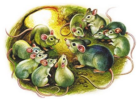 Собралися мышки, подпольные воровки, думушку думают, совет держат: «Как бы нам, мышкам, сухарь в норку протащить?»