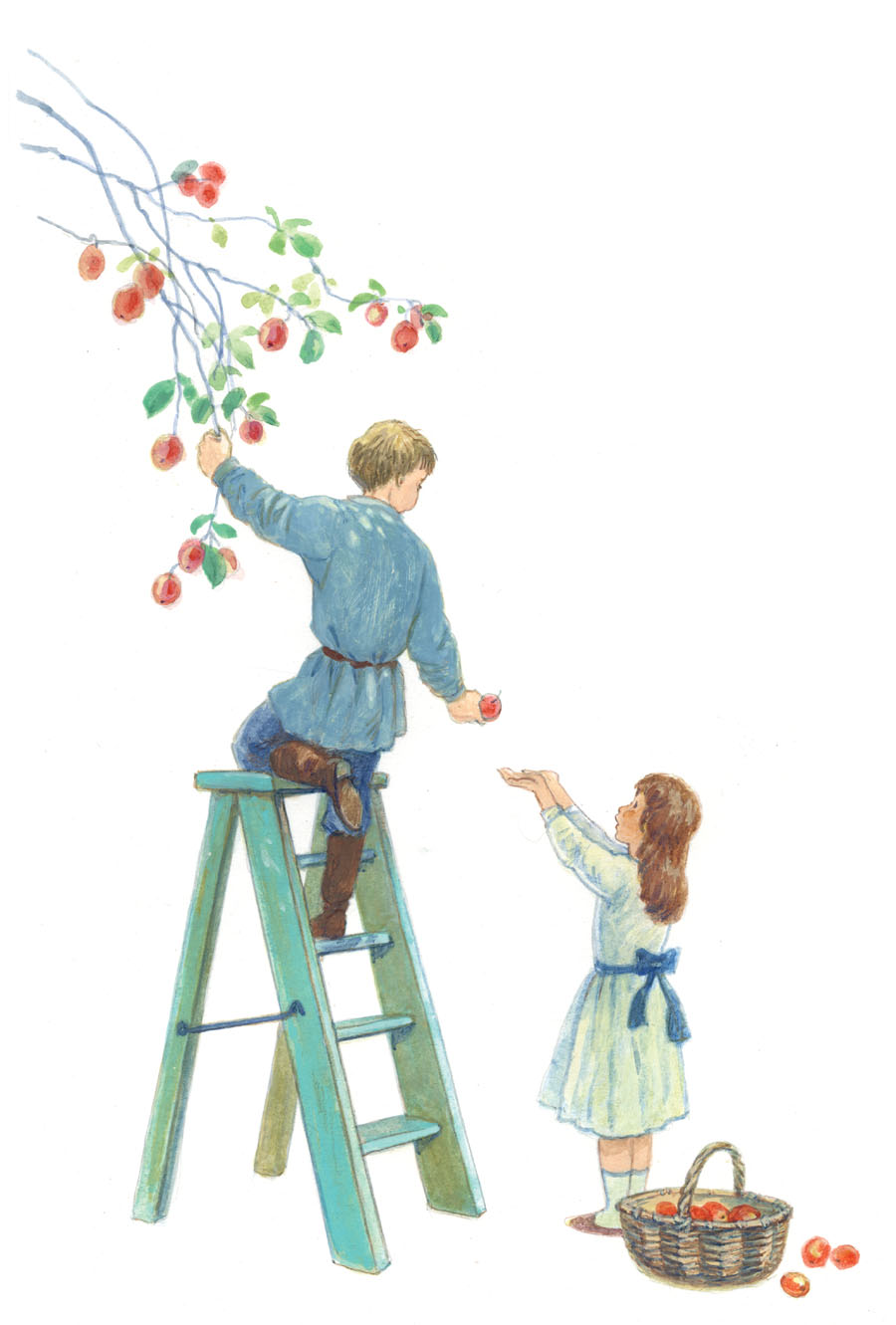 Наступила осень. В саду собирали плоды – румяные яблоки и жёлтые груши. Митя был в восторге и говорил отцу: