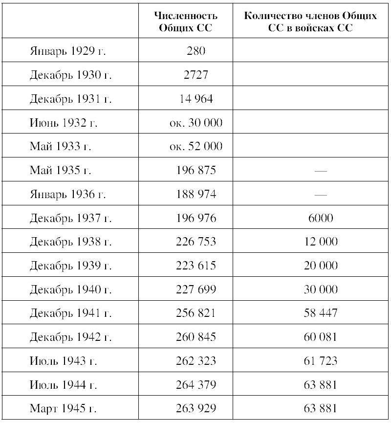 Численность Общих СС примерно с 1935 г. оставалась достаточно стабильной: