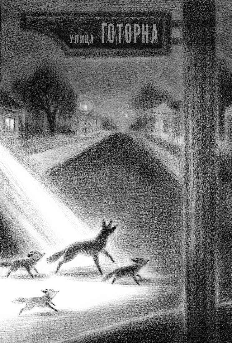 В угасающих сумерках лисы перешли улицу и подкрались к дому со скрипучим флюгером.