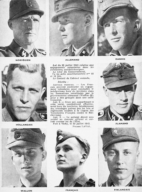 В попытке привлечь на свою сторону иностранцев из стран Западной Европы немцы делали ставку на их антикоммунистические убеждения и на важность участия в крестовом походе против большевизма. Так, пропагандистская брошюра, выпущенная в начале 1943 года и рассчитанная на французов, утверждала: «Очевидно, что создание части французских добровольцев, составляющей ядро войск СС, являет собой новый шаг, важный для укрепления союза европейской молодежи в ее борьбе с большевистским нигилизмом». Далее следовало: «Добровольцы почти всех стран Европы, сражаясь бок о бок со своими немецкими товарищами, проявляли доблесть в боях на Восточном фронте, и войска СС, авангард национал-социализма, первоначально являвшегося лишь внутренней политической силой Германии, теперь превратились в нерушимое сообщество молодых европейцев, отстаивающих духовные ценности нашей цивилизации».