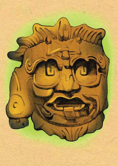 Бог Солнца, прорисовка керамической маски. Гватемала