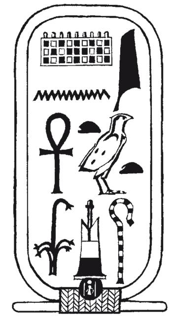Почему же именно с него? Сегодня кажется, что эта идея тоже, так сказать, «лежала на поверхности», эта мысль опять же представляется элементарно простой. Как мы уже упоминали, Розеттская надпись содержала сообщение о том, что жрецы решили оказать царю Птолемею Эпифану особые почести. Прочитанный греческий текст сразу внес в этот вопрос абсолютную ясность. Между тем в иероглифическом тексте, в том месте, где, как это было нетрудно предположить, упоминалось имя царя, группа знаков была обведена овальной рамкой – картушем, как его стали называть впоследствии.