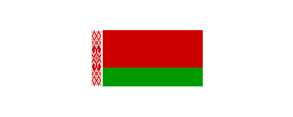 Согласно Указа №214, Государственный флаг Республики Беларусь – прямоугольное полотнище, состоящее из двух горизонтальных полос: верхней – красной шириной в 2/3 и нижней – зеленой в 1/3 ширины флага; возле древка вертикально беларуский национальный орнамент – красные геометрические элементы на белом поле, шириной в 1/9 длины флага; отношение ширины флага к его длине – 1: 2.