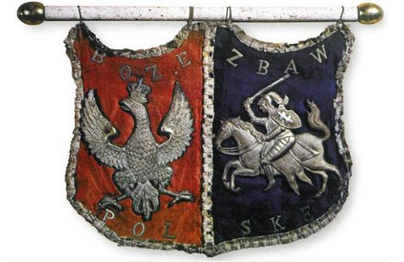 Этот герб изображался на флагах и знаменах повстанцев, но чаще на знаменах было изображение только «Погони» и польского орла.