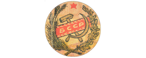 1. С аббревиатурой названия республики «Б.Р.С.Р.», т.е. «Беларуская Радная (от бел. рада – совет) Соціалістічэская Республика»;