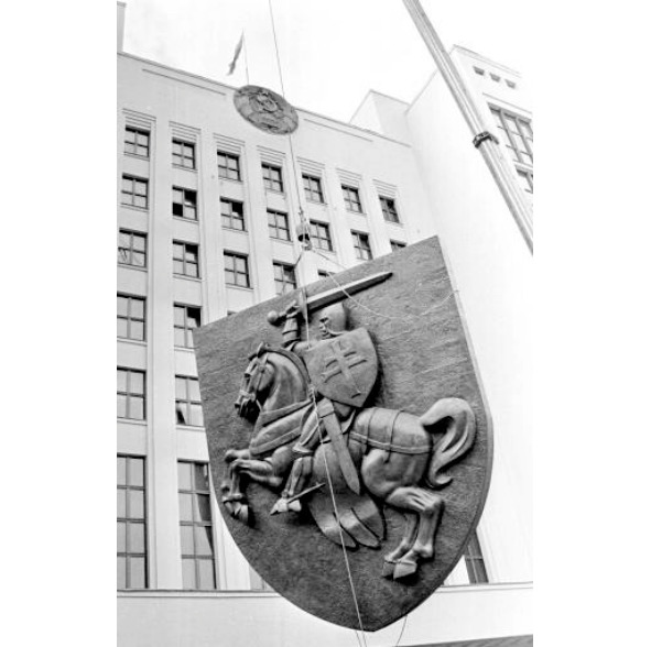 После провозглашения 25 августа 1991 г. независимости БССР, ставшей вскоре Республикой Беларусь, на VI внеочередной сессии Верховного Совета 19 сентября 1991 г. был принят Закон «О Государственном гербе Республики Беларусь», согласно которого «Государственным гербом Республики Беларусь является древний беларуский герб „Погоня“, который представляет собой изображение помещенного на красном фоне всадника белого цвета, обращенного в левую сторону, с поднятым мечом и щитом с мечом».