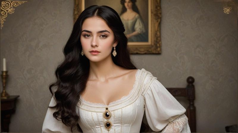 Пока тяжкие и крамольные мысли проносились в её голове, девушка легко скинула шубку. А Татьяна Николаевна уставилась на тонкую талию этой невероятной красавицы. Помимо талии у девицы имелась высокая роскошная грудь и широкие бедра. Одета девушка была в синюю креповую юбку и светлую блузку с рюшами и кружевными рукавами, сшитую по фигуре. Под шапочкой у нее оказались густые волосы, заколотые черепаховым гребнем, кои рассыпались по плечам из-за упавших на пол шпилек. Целое облако пушистых тёмных волос.