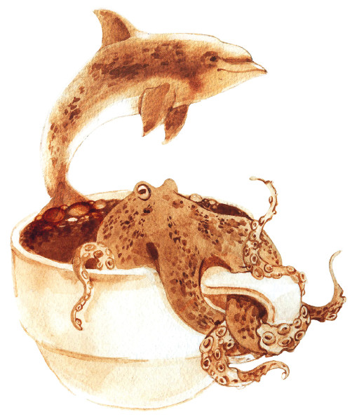 ДельфинДельфин – символ морской стихии. Его появление в чашке указывает на связь с морем и предвещает скорое решение проблем при поддержке третьей особы.