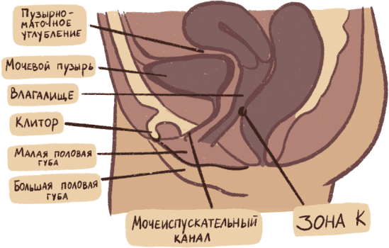 При стимуляции зоны А происходят более длительная лубрикация влагалища, более яркое возбуждение и множественные оргазмы.