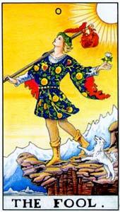 Карта Шута считается нулевой, что подразумевает начальный шаг, чистый лист бумаги, на который запишется судьба. Этот рассказ может быть удивительным и ярким, а может быть серым и пустым. На рисунке карты изображен юноша, небрежно одетый, с безмятежной улыбкой на лице. За плечами котомка с пожитками. Она одета на посох. Это не случайный элемент описания карты – это не понимание возможностей, которые дают знания и мудрость старших. Это все равно, что иметь огромный алмаз, не знать его ценность и колоть ими орехи.
