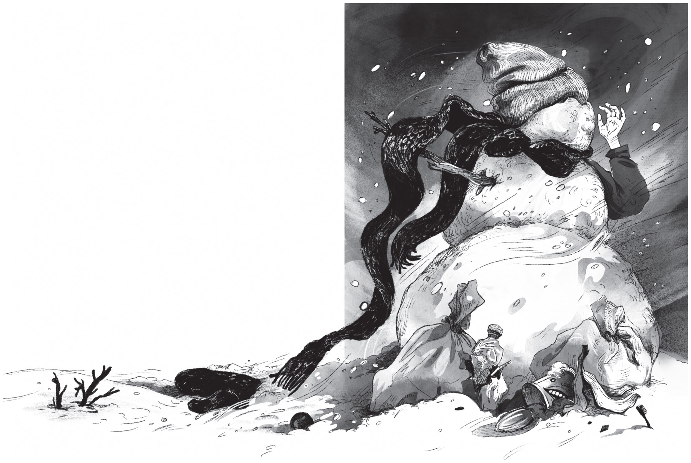А там снег сошёл. Вместе со снегом и девочка растаяла. Только два пакета с мусором на том месте остались. Да кончик морковки.