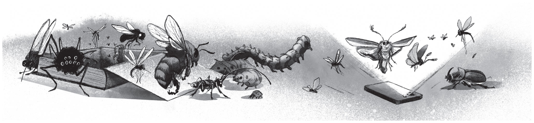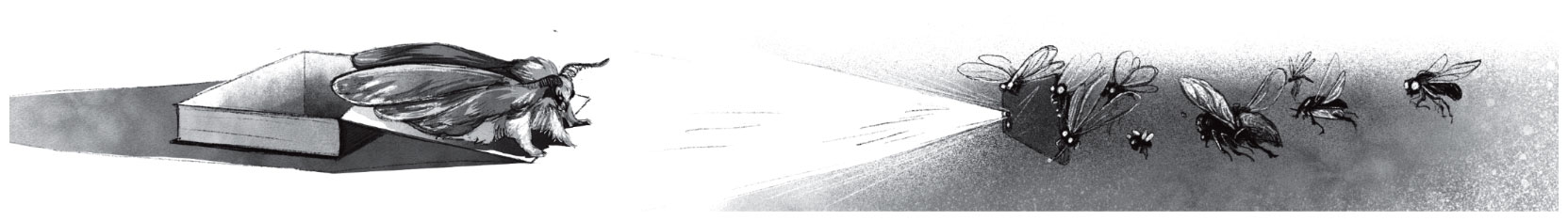 А насекомые жужжат, щёлкают, стрекочут – всё вылетают и вылетают из шкатулки. В свете телефонного фонарика кружатся, по комнате носятся, в лицо девочке тыкаются.