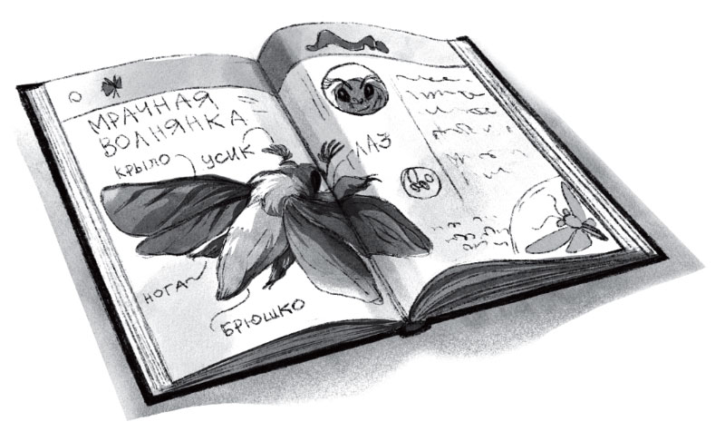 – Так-так… Вот и мой параграф, – сказала девочка и стала его читать. Только дошла до нужного места, как – шурх! – на страницу какая-то странная бабочка прилетела. На моль немного похожая. Серо-коричневая вся, как будто пыльная. И крыльями буквы в учебнике закрыла. На самом важном месте!