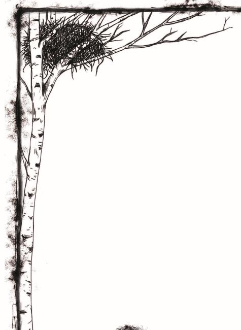 Подбежал к тополю, подпрыгнул, руками и ногами ствол обхватил и полез. Добрался до середины, смотрит вверх – там тёмно-серое гнездо на ветру покачивается. Причём как-то странно – кругами.