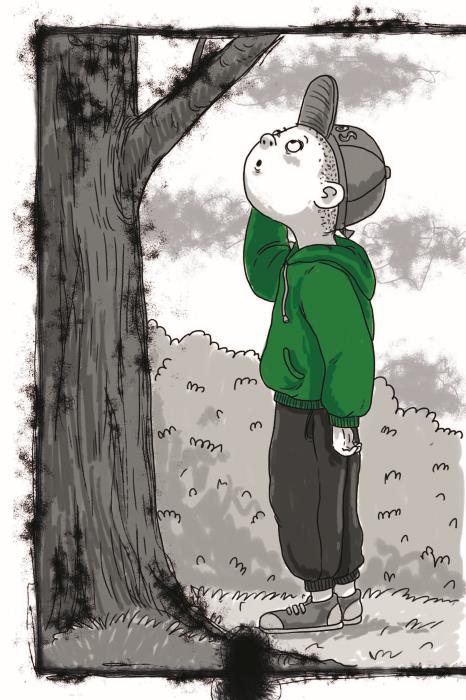 «Продуло меня на этой верхушке, – решил мальчик. – Надо домой идти. Пускай бабушка чаю горячего сделает. Может, согреюсь – и всё пройдёт». Руками по ветке добрался до ствола, спустился по нему на землю и пошёл домой.
