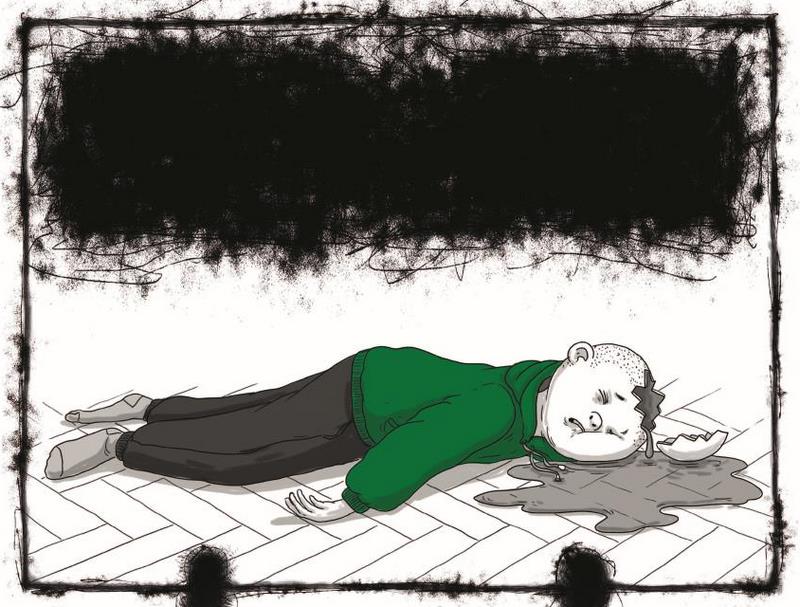 Треснула голова. А из неё что-то мутное и густое наружу потекло, будто белок сырого яйца.