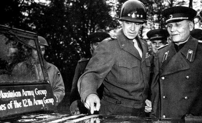Генерал О.Брэдли дарит Маршалу Советского Союза И.С.Коневу джип от американской 12-й группы армий