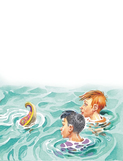 – Куда вы? – крикнул Волька своим приятелям, энергично поплывшим куда-то в сторону. – Всё равно до берега не доплыть, да его и не видно. Не тратьте силы, ложитесь на спину.