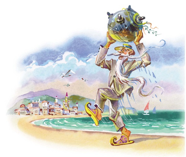 – Пойдёмте, о друзья мои, к морю, дабы я смог немедленно приступить к поискам моего несчастного брата, – предложил Хоттабыч.