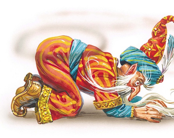 Уже больше половины дыма скрылось в кувшине, и Серёжа, затаив дыхание, схватил крышку, чтобы снова запечатать в нём джинна, когда тот, видимо раздумав, снова вылез наружу и опять принял человеческий образ.