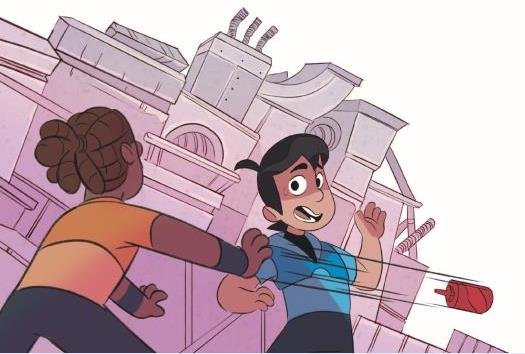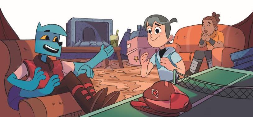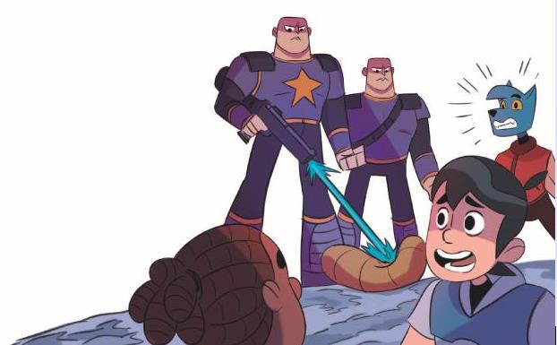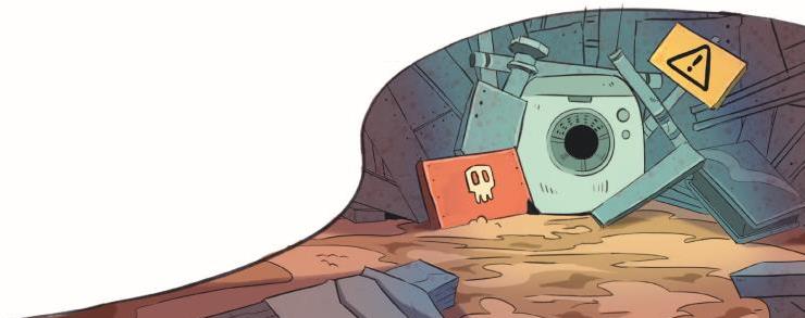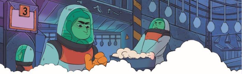 У нас отличный командный штаб: пыль, грязь, беспорядок – место лучше некуда! Есть несколько старых диванов, из них пружины торчат, а ещё кто-то выбросил визор, работающий на солнечных батареях. Он до того древний, что голограммы показывает только чёрно-белые. Есть и теннисный стол, слегка кем-то обглоданный, и роликовые коньки без колёс. Мы их хотели выкинуть, но Исаи сказал, что они и так уже на свалке, второй раз не выкинешь. Возразить было нечего… А вон там бочка с радиоактивными отходами, которые давным-давно выдохлись и стали неопасные (но если потрогать, волосы топорщатся).