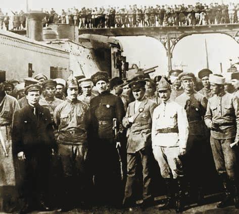 Г.К. Орджоникидзе (второй слева) среди бойцов и командиров Красной армии в городе Грозном. 1918. [ТАСС]