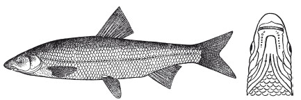 Название «подуст», употребляемое в большей части России, указывает на главную особенность этой рыбы – положение рта, который находится под сильно выдавшимся коническим и хрящеватым носом, в чем он с первого взгляда несколько напоминает уже знакомого нам рыбца, или сырть. Но подуст легко отличается от рыбца своим более брусковатым телом, почти, как у голавля, прямым ртом, небольшими глазами и коротким заднепроходным плавником. Кроме того, число глоточных зубов (обыкновенно 6 + 6) у него более и зубы эти имеют совсем другую форму и гораздо толще; нижняя губа хрящеватая. Спина у подуста зеленовато-черная, бока и брюхо блестящего серебристого цвета; все плавники, за исключением черноватого спинного, более или менее красноваты, а хвостовой, кроме того, сверху и снизу имеет черную кайму. Во время нереста, особенно у самцов, все цвета становятся ярче и на углах рта, на жаберной крышке и у основания грудных плавничков замечаются оранжевые желтые пятна; с боков, начиная от глаз до конца хвоста, тянется темная полоса, а на чешуях, в свою очередь, образуются черные пятнышки, через что подуст принимает довольно оригинальный вид. Москворецкий подуст, однако, почти вовсе не изменяется в цвете и никаких полос и пятнышек я на нем не замечал. Внутренности подуста замечательны тем, что брюшная плева у него более или менее темного черного цвета, который всего интенсивнее кажется во время нереста, отсюда, конечно, и произошли названия чернопуз, чернобрюшка, и по этому признаку его легко можно отличить от всех других рыб.