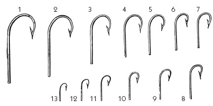 Самые лучшие крючки английские. Они хорошо закалены, так что не ломаются и не разгибаются, жало у них конусообразно, достаточно длинно и тонко, бородка хорошо поставлена, наконец, все части крючка соразмерны. Немецкие крючки значительно хуже. Только в некоторых местностях можно достать очень хорошие самодельные крючки для крупной рыбы, изготовляемые самими рыболовами из косной стали.