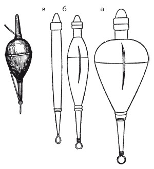 Рис. 123. Различные формы поплавков: а и б – пробочные; в– перяной