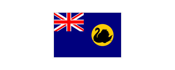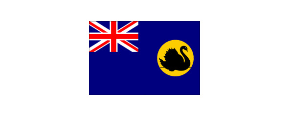 Флаг (пропорции 1:2) официально учрежден 27 ноября 1875 г. На его бэдже изображен черный лебедь в желтом круге. Это изображение уже с 1830 г. считалось эмблемой колонии, так как даже первоначальное название колонии было «Swan River Colony» – «Колония черных лебедей», что отражало действительно большое количество черных лебедей на водоемах и реках, которое поразило первых поселенцев.
