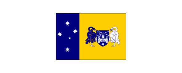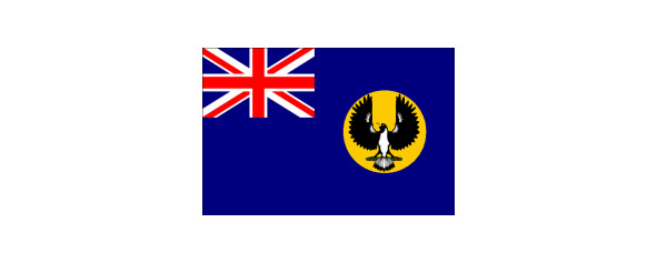 Нынешний флаг (пропорции l: 2) учрежден 13 января 1904 г. В желтом поле его бэджа, который символизирует солнце, стилизованное изображение сидящего на ветви эвкалипта черно-белого свистящего сорокопута (Gymnorhina Tibicen) – национального символа штата.