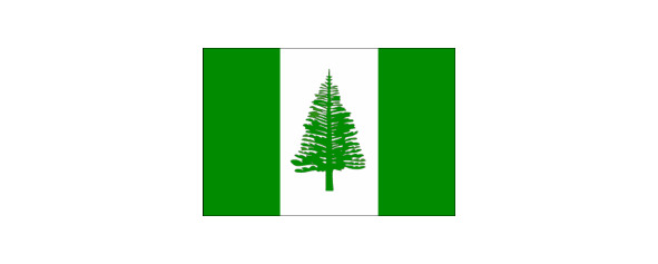 17 января 1980 г. был учрежден флаг острова (пропорции 1: 2), который состоит из вертикальных полос зеленого, белого и зеленого цвета (отношение полос 7: 9: 7). В середине белой полосы изображена зеленая норфолкская сосна – символ острова, впервые изображенный на печати в 1856 г.