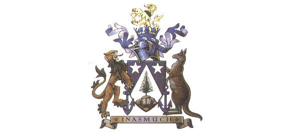 Щитодержатели герба – серебряный австралийский кенгуру (слева) и золотой британский лев; каждый из них опирается на якорь, что символизирует островное положение владения.