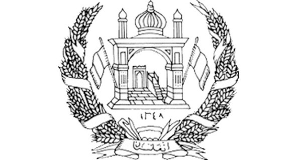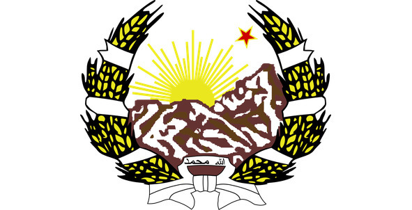 Все это обрамлено двумя рядами пшеничных колосьев, перевитых лентой со свободными концами, на центральной части которой, в основании герба, начертано слово «Афганистан».