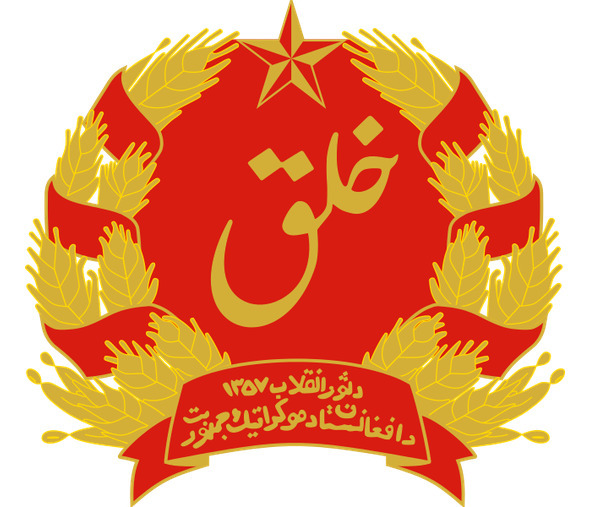 В середине июня 1978 г. Революционный совет страны утвердил декреты о ее гербе и флаге. Новый государственный герб представлял собой начертанное в красном поле золотыми арабскими буквами слово «хальк» (в переводе с фарси – народ) в обрамлении венка из золотых колосьев пшеницы, увенчанного пятилучевой звездой.