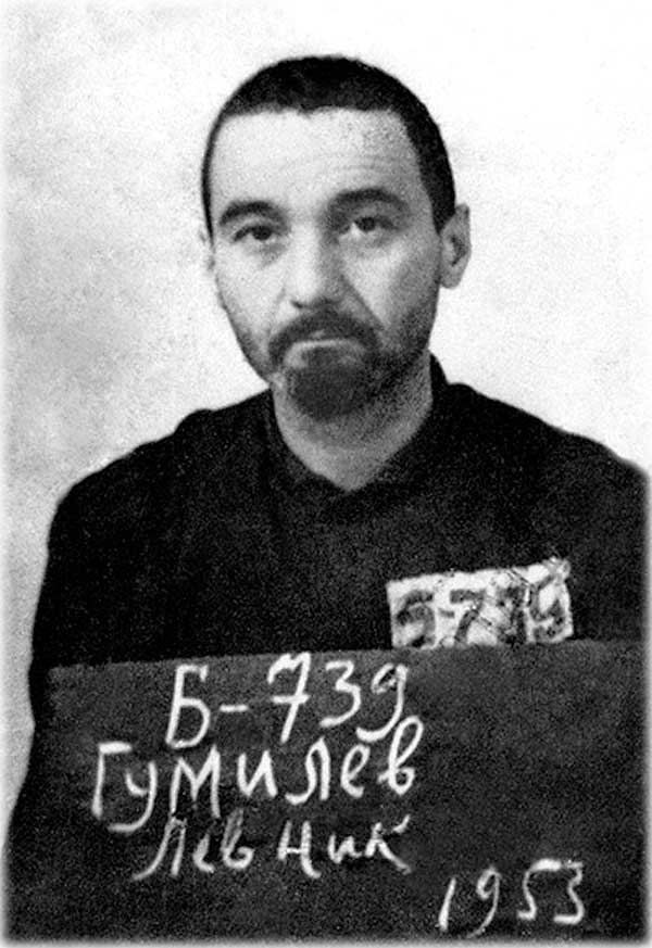 В 1949 году Гумилева осудили на десять лет лагерей и отправили отбывать наказание в Казахстан. Ученый-экономист Лев Вознесенский вспоминал: «Представьте себе занесенный снегом, скованный лютым морозом плац, по краям которого стоят заиндевелые бараки. В одном из них почти сразу после того, как накануне вечером меня водворили в спецлагерь, расположенный в казахстанской степи, я увидел согбенную фигуру заросшего бородой старика, поддерживавшего огонь в печке. Это был Лев Николаевич Гумилев. «Старику» в тот год исполнилось 38 лет… Он сразу рассказал о том, как мой отец, ректор Ленинградского государственного университета, вопреки яростному, по тогдашнему выражению нового знакомого, сопротивлению местных и московских властей, дал ему возможность перед последним, четвертым арестом защитить кандидатскую диссертацию, – а для меня, только что отца потерявшего, теплые, благодарные слова о нем были дороже всего другого в мире».