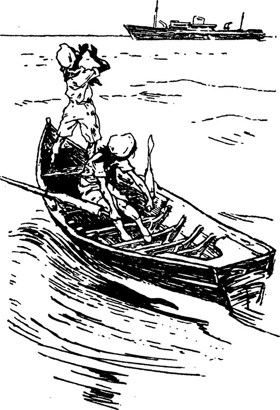 Когда Тоня разворачивала лодку носом к берегу, их чуть не положило совсем на борт. Волна захлестнула шлюпку, и ребята разом промокли. На дне шлюпки заплескало.