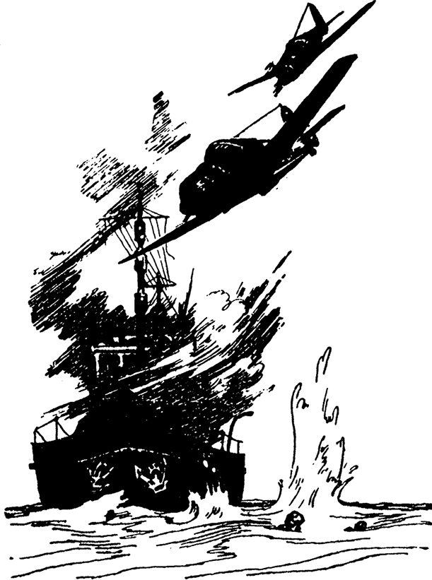Вечером Федька не стал есть пончики, которые принесла ему из салона командирской кают-компании Дуся. Он потом рассказывал мне, что долго не мог заснуть, все думал о Фальковском. Страшно, должно быть, когда вокруг тебя вода и над головой все вода и вода. И рядом рвутся страшные глубинные бомбы. Вот-вот попадет, вот-вот сомнет, расплющит… Намучившись, Федька заснул. Под утро Федьке стало холодно, и от этого ему приснилось, что он лежит в холодной воде на самом дне, и уши у него стали как жабры, и он дышит ими, впуская воду в одно ухо и выпуская из другого. А сверху вдруг нырнула и пошла, булькая, прямо на него глубинная бомба, и вот как рванет!.. Федька проснулся от гулкого удара за окном. За ним последовал второй. Федька вскочил и увидел легкий дымок, еще вившийся у пушки на подводной лодке, которая, подняв позывные[10]10