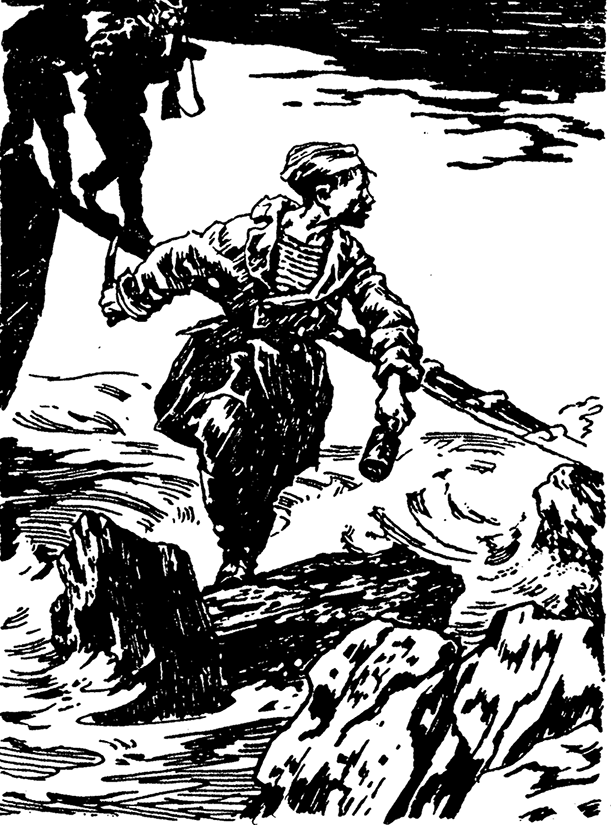 И, едва дождавшись команды, с ножом-бебутом в одной руке, с гранатой в другой, минуя сходни, он прыгнул с борта в черную, обжигающую морозом воду у берега.