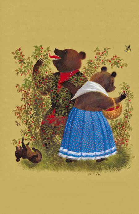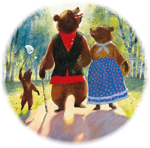 Дверь была отворена; она посмотрела в дверь, видит – в домике никого нет, и вошла. В домике этом жили три медведя. Один медведь был отец, звали его Михаил Иваныч. Он был большой и лохматый. Другой была медведица. Она была поменьше, и звали её Настасья Петровна. Третий был маленький медвежонок, и звали его Мишутка. Медведей не было дома, они ушли гулять по лесу.
