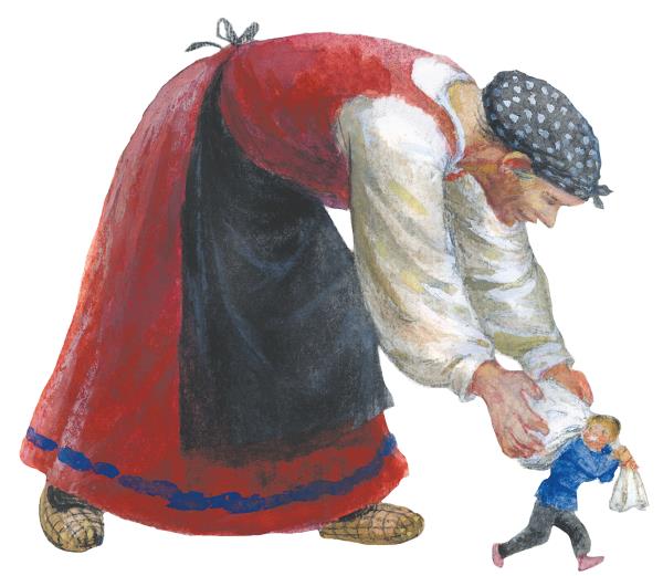 Старик услыхал с поля, кто-то его зовёт, пошёл к сыну навстречу, пересадил его через кочку и говорит:
