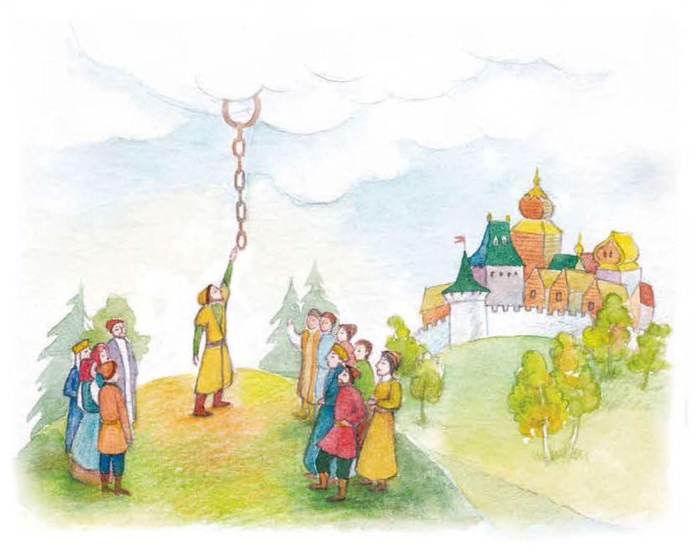 Так он обманул всех. Но с тех пор цепь поднялась на небо и больше не спускалась. Так рассказывают старики.