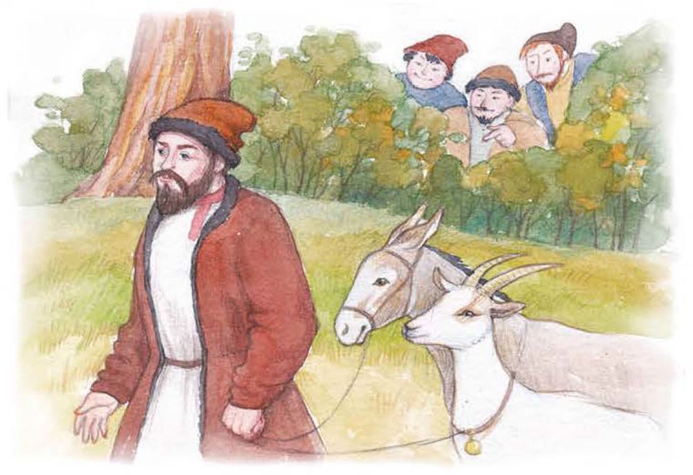 – Я видел твою козу: вот сейчас только в этот лес пробежал человек с козою. Его можно поймать.