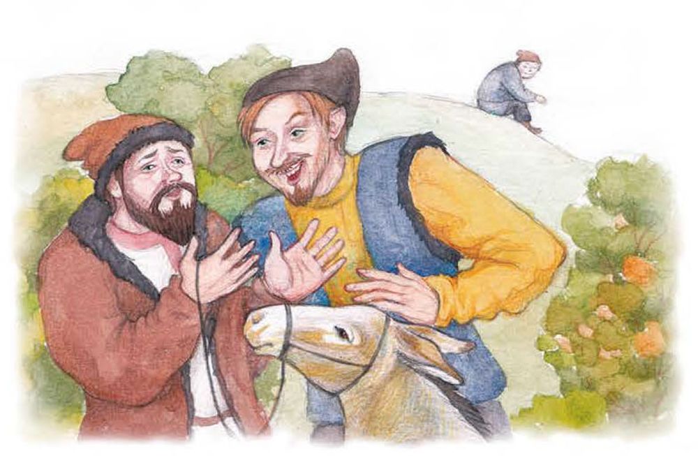 Мужик побежал догонять козу и попросил вора подержать осла. Второй вор увёл осла.