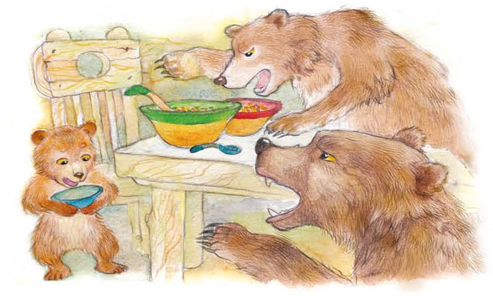 А медведи пришли домой голодные и захотели обедать. Большой медведь взял чашку, взглянул и заревел страшным голосом: