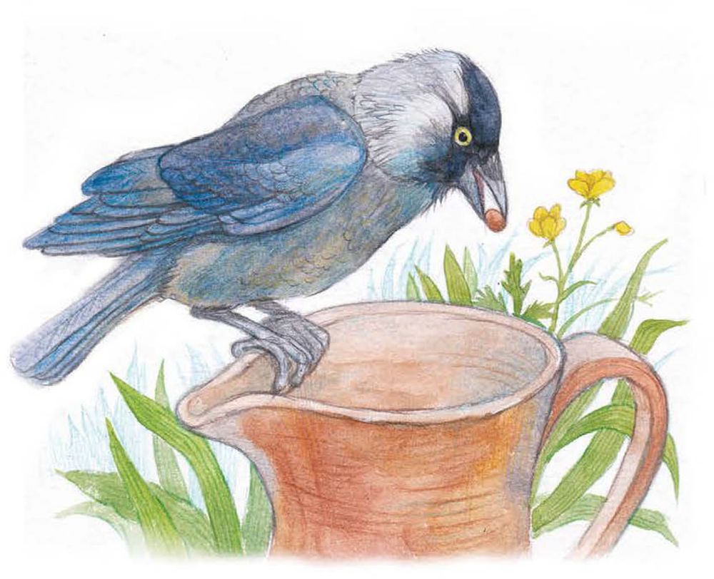Хотела Галка пить. На дворе стоял кувшин с водой, а в кувшине была вода только на дне.