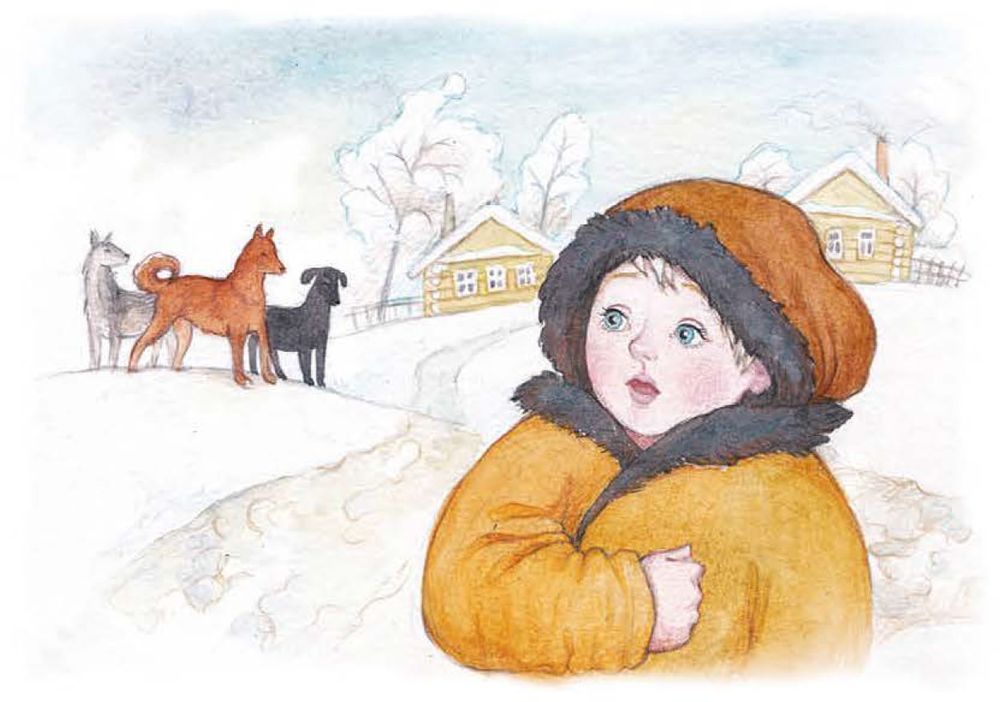 [Закрыть], собаки не трогали его, они его знали. Но когда он вышел к чужим дворам, выскочила Жучка, залаяла, а за Жучкой большая собака Волчок.