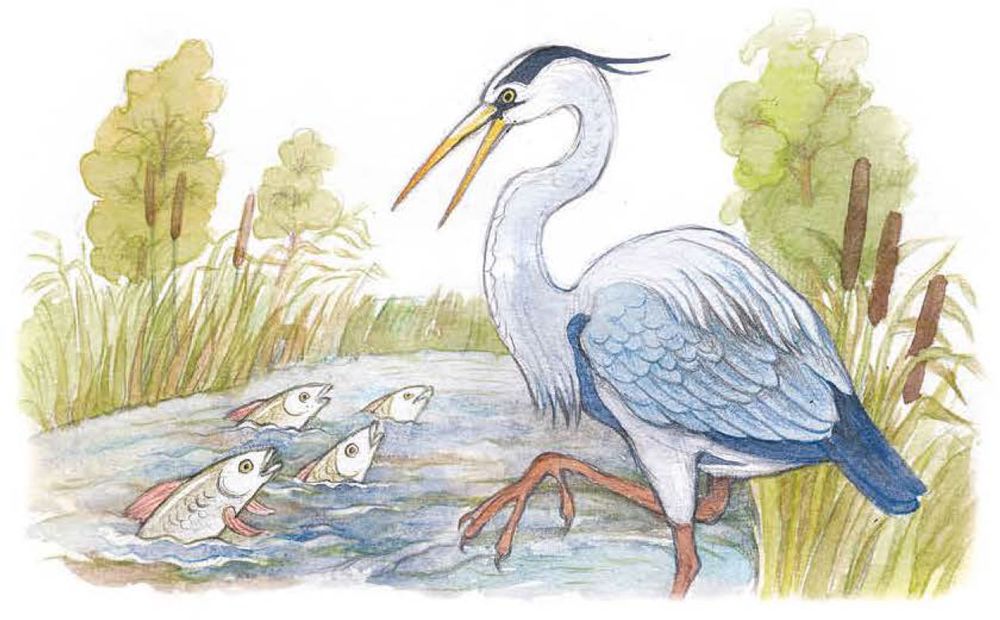 Жила цапля у пруда и состарилась; не стало уж в ней силы ловить рыбу. Стала она придумывать, как бы ей хитростью прожить. Она и говорит рыбам:
