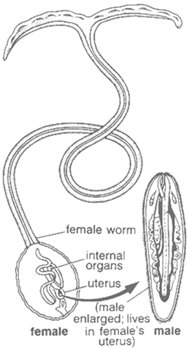 Самец и самка морского червя Bonellia viridis